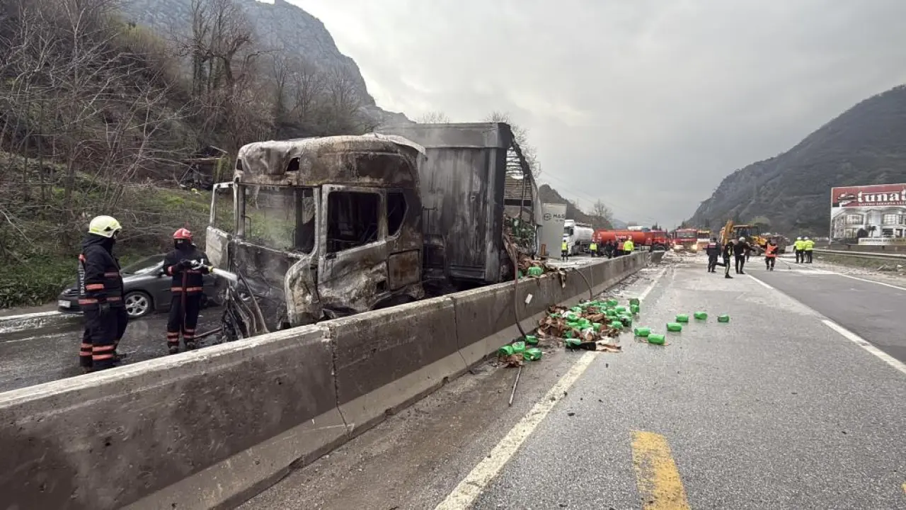 Edinilen bilgiye göre, D-650 kara yolu Sakarya geçişinde Bilecik istikametine seyir halinde olan M.Ç. (45) yönetimindeki 42 HC 623 plakalı çamaşır suyu yüklü tır ile L.A. idaresindeki 10 AUP 020 plakalı tır çarpıştı.