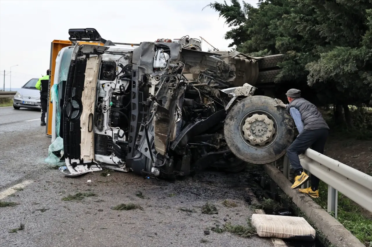 Toptepe mevkisi Atatürk Bulvarı'nda Ordu'dan Samsun istikametine seyir halinde olan M.A.E. idaresindeki 06 EGF 390 plakalı hafriyat kamyonu, refüjdeki beton aydınlatma direğine çarparak devrildi.