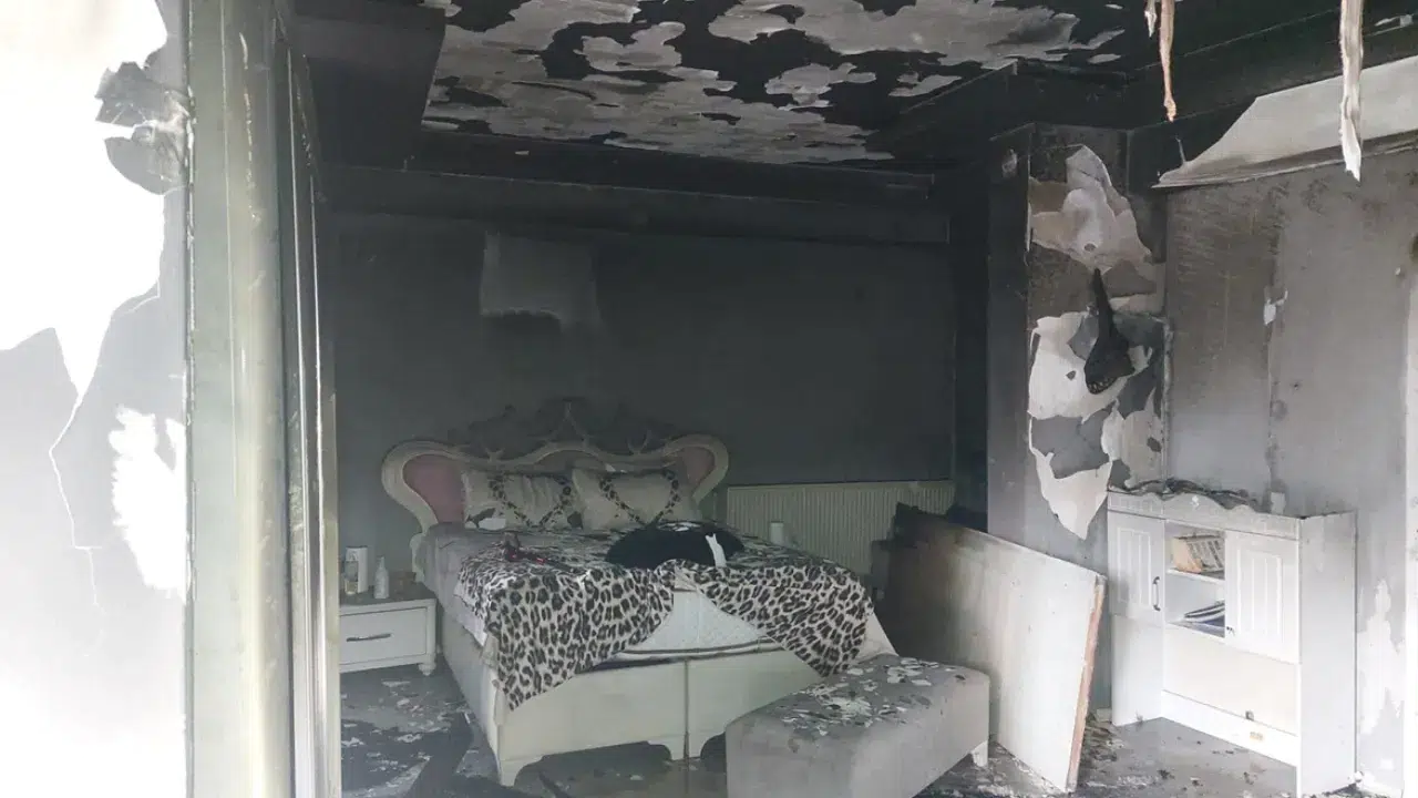 yatak odasını ateşe verdi