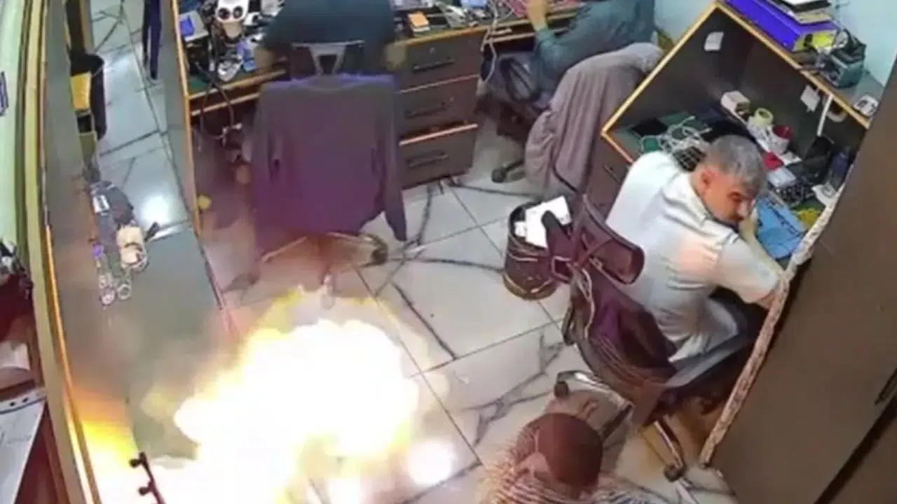 Edinilen bilgiye göre olay, Şanlıurfa'nın Viranşehir ilçesine bağlı Kışla Mahallesi Askerlik Şubesi Caddesi üzerinde yaşandı. Tamir dükkandaki telefon, şarjda olduğu esnada alev aldı. Telefonun yanında oturan küçük bir çocuğun yaşadığı panik ise kameraya yansıdı.