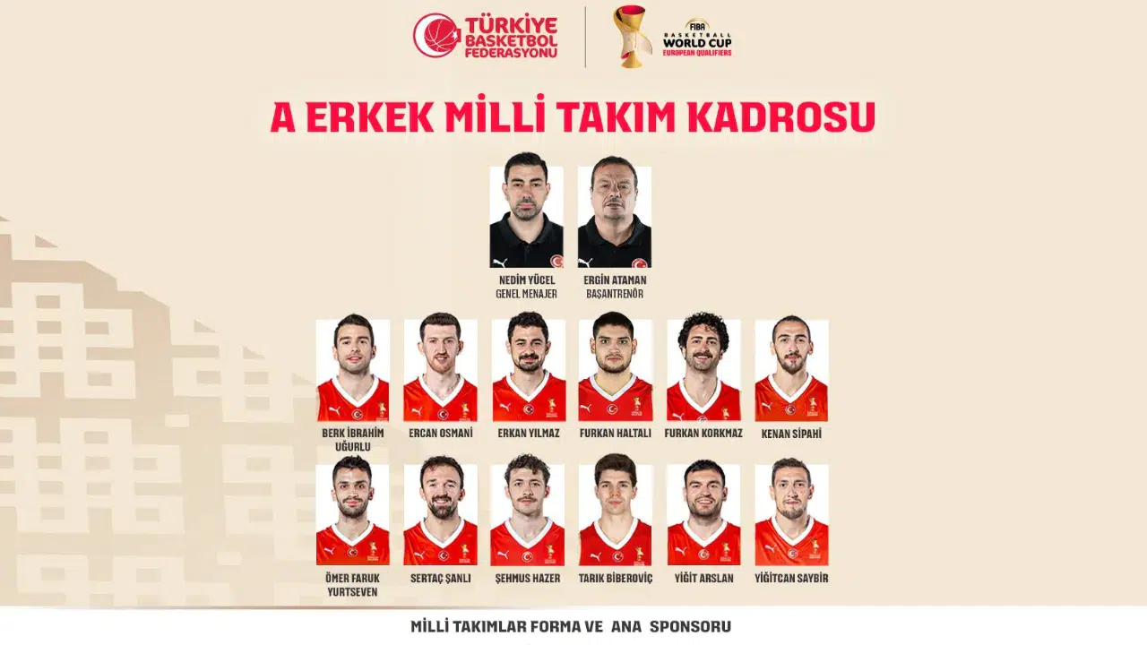 A Milli Erkek Basketbol Takımı’nın, FIBA 2027 Dünya Kupası Elemeleri’nde bugün İsviçre ile oynayacağı müsabakanın 12 kişilik kadrosu belli oldu.