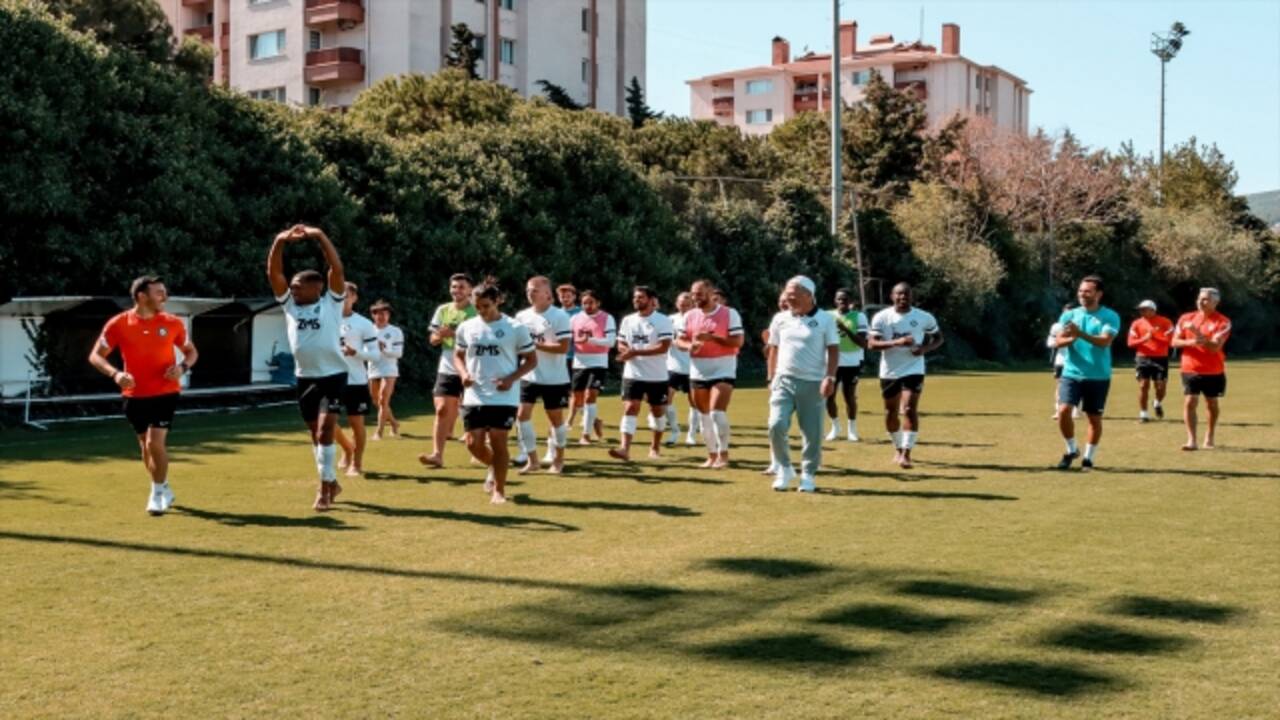 Gaziemir Vali Kutlu Aktaş Tesisleri'nde teknik direktör Mustafa Denizli yönetimindeki antrenmanda ısınmanın ardından pas ve şut çalışması gerçekleştiren siyahbeyazlı futbolcular daha sonra çift kale maç yaptı.