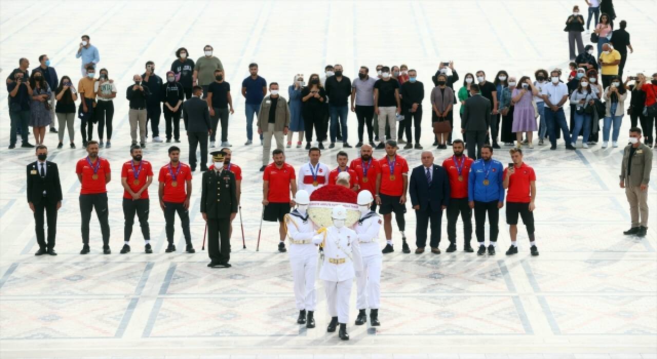 Türkiye Bedensel Engelliler Spor Federasyonu (TBESF) İdari Asbaşkanı İrfan Çelik, Ampute Milli Futbol Takımı Teknik Direktör Osman Çakmak ve oyuncular, şampiyonluk kupasıyla Anıtkabir'e geldi.