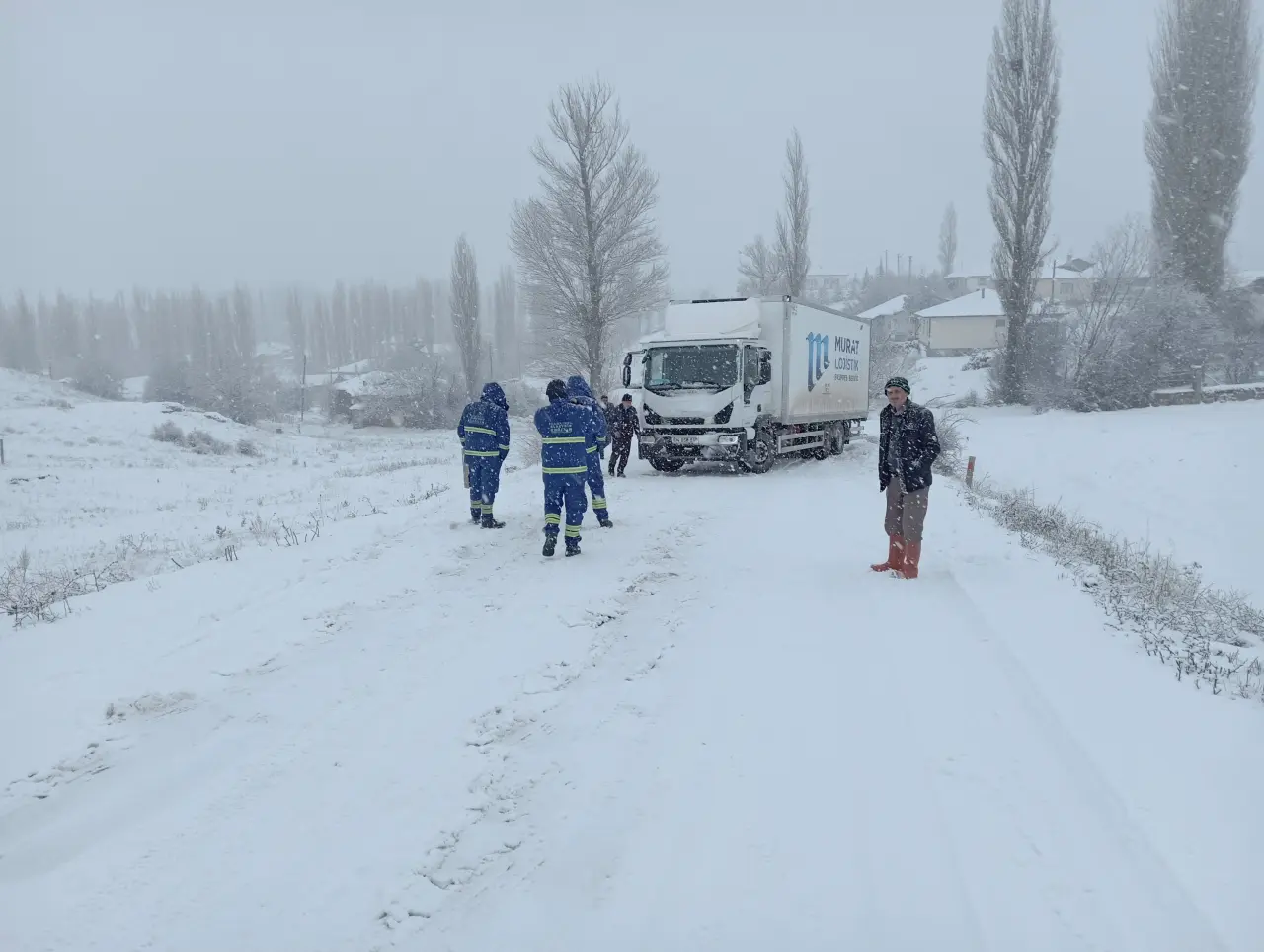 YOĞUN KAR YAĞIŞI NEDENİYLE YOL BEYAZA BÜRÜNDÜ