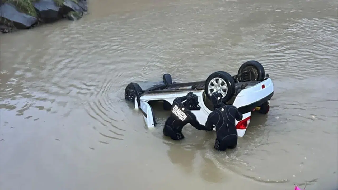 Trabzon'da meydana gelen kazada, otomobile göle devrilirken sürücü kendi imkanlarıyla kurtulmayı başardı.