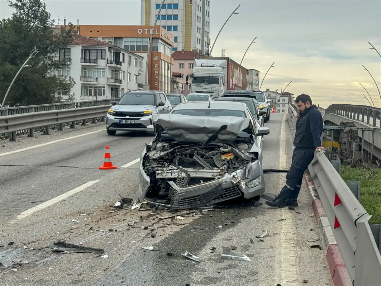 G.T. (23) yönetimindeki 64 LV 405 plakalı otomobil, trafik yoğunluğunun yaşandığı Şehit Piyade Asteğmen Mehmet Bozkuş Köprüsü'nde S.Y. (46) idaresindeki 64 AAU 395 plakalı otomobile çarptı.