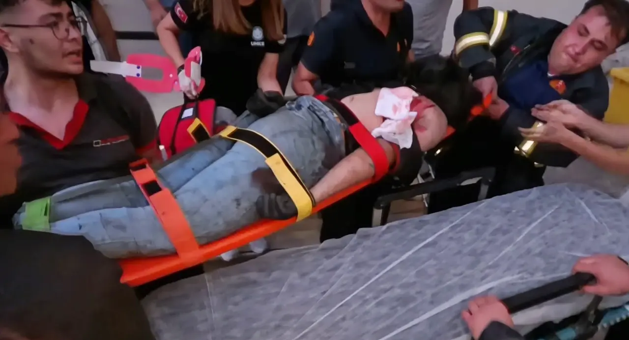 AĞIR YARALANAN 2 İŞÇİ SEDYEYLE AMBULANSA TAŞINARAK HASTANEYE KALDIRILDI