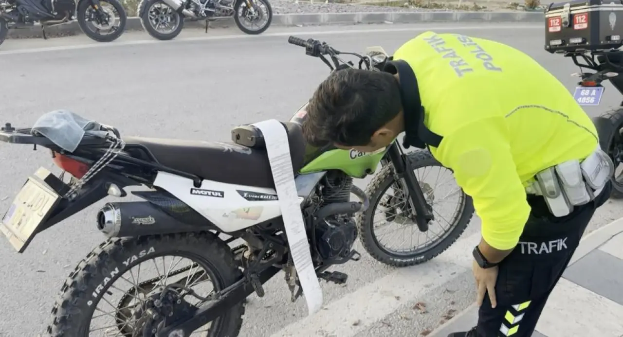 Aksaray'da polisten kaçan 15 yaşındaki motosiklet sürücüsüne 45 bin 746 TL ceza yazıldı. Edinilen bilgiye göre, Taşpazar Mahallesi'nde devriye atan polis ekipleri, plakası bezle kapatılmış olan motosikletin sürücüsüne ‘dur’ ihtarında bulundu.