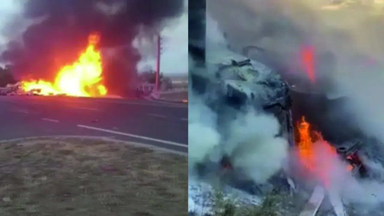 Olay, Aksaray - Ankara Kara yolunun 13. kilometresi Topakkaya beldesi kavşağında yaşandı. Edinilen bilgiye göre, Ankara’dan Aksaray istikametine seyreden 24 yaşındaki Salih E. idaresindeki 63 AGC 624 plakalı araç yedek parçası ve motor yağı ile antifriz yüklü tır, kavşağa geldiğinde sürücüsünün direksiyon hakimiyetini kaybetmesi sonucu kontrolden çıkarak önce refüje çıkıp aydınlatma direklerine çarptı, sonra bariyerleri yıkıp şarampole takla attı. Hurdaya dönen tır kaza sonrası yanmaya başlarken, tır kısa sürede adeta alev topuna döndü.