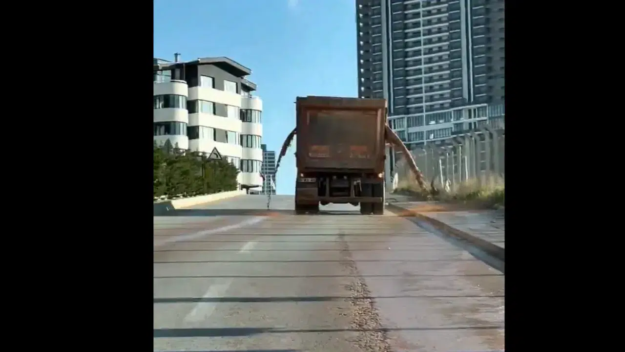 Kamyon ilerledikçe yola yayılan çamurlu su nedeniyle çevredeki araçların kirlendiği görüldü. Yol kenarında park halinde bulunan bazı araçların da çamurlu su nedeniyle çamur içinde kaldığı görüntülere yansıdı. Trafikte ilerleyen sürücülerin ise kamyondan uzak durmaya çalıştığı görüldü. Çevrede bulunan vatandaşlar, hafriyat kamyonlarının gerekli önlemler alınmadan trafiğe çıkarılmasına tepki gösterirken, olay anı çevrede bulunan kişiler tarafından cep telefonu kamerasıyla kaydedildi.