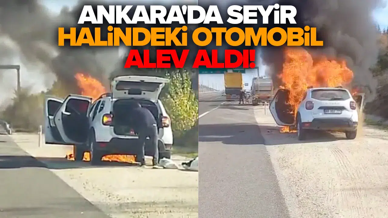 Ankara'da seyir halindeyken alev alan otomobil kullanılamaz hale geldi.