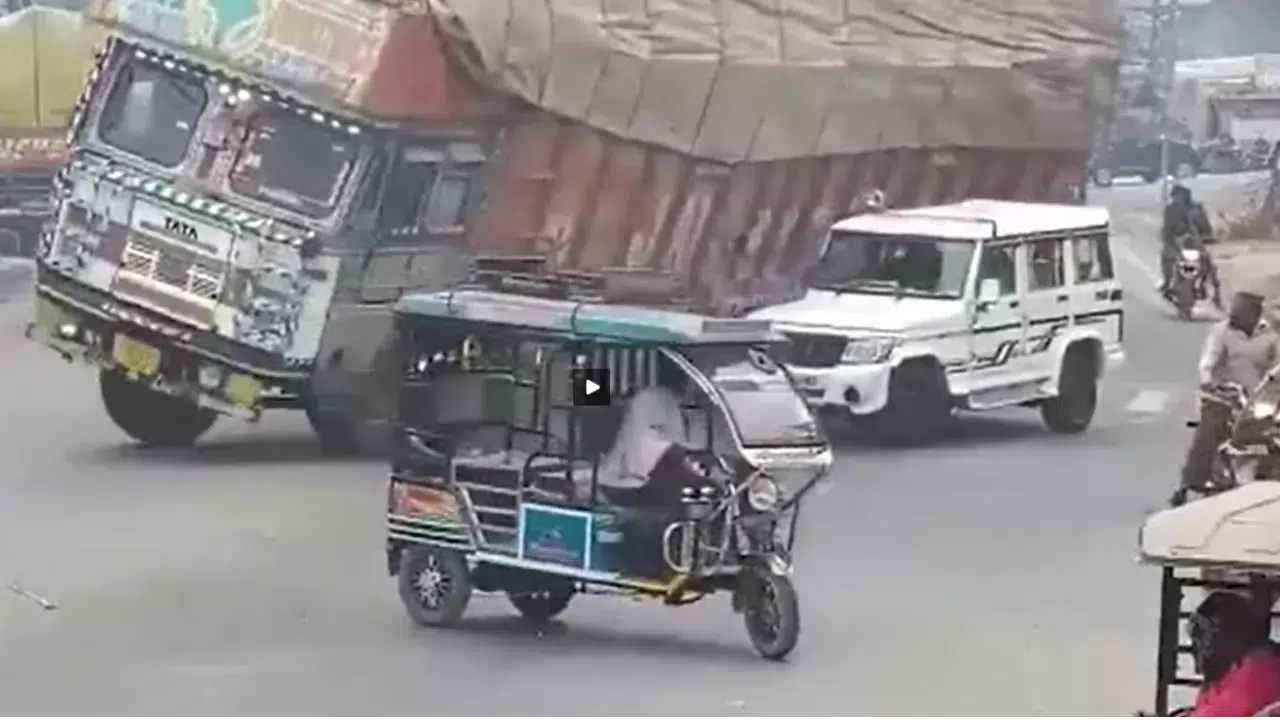 Hindistan'ın Uttar Pradesh eyaletine bağlı Rampur bölgesinde kan donduran bir kaza meydana geldi. Talaş yüklü bir kamyon, manevra yapan bir otomobile çarpmamak için ani dönüş yapınca kontrolden çıktı.