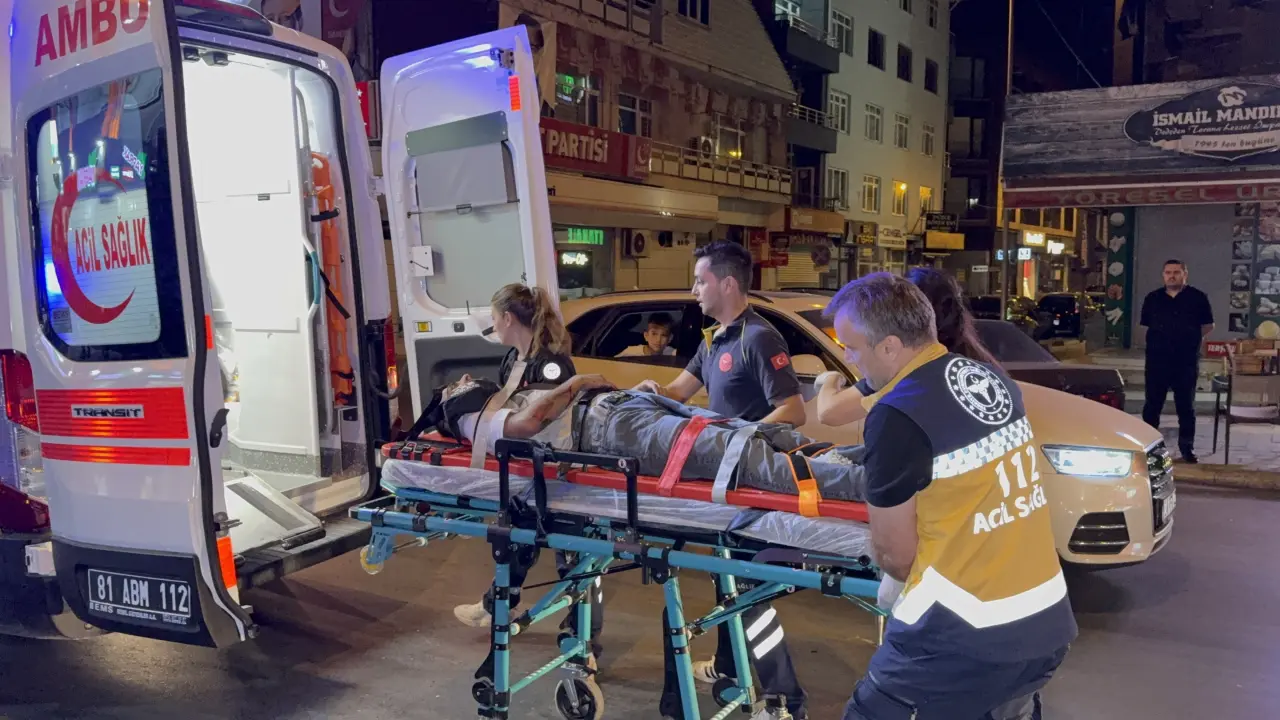 Kaza Atatürk Bulvarı Gürcü Osman Cami önünde meydana geldi. Alınan bilgilere göre Çoban kavşağı istikametinden Düzce Belediyesi istikametine seyir halinde olan A.Ö. idaresindeki 81 ADJ 211 plakalı elektrikli otomobil ara sokağa girmek için sinyal verdiği esnada aynı istikamette giden Ö.D. İdaresinde ki 81 AFF 238 plakalı motosikleti ile çarpıştı. Çarpışmanın etkisi ile elektrikli otomobil devrilirken, motosiklet savrulup park halindeki 2 araca çarparak durabildi.
