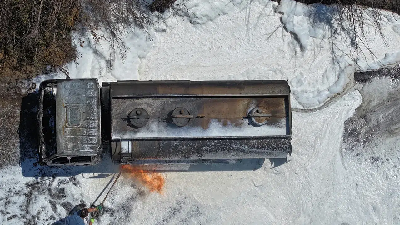 N.Y'nin kullandığı 34 JM 8667 plakalı tanker, Keramettin köyü yakınlarında henüz belirlenemeyen nedenle alev aldı.