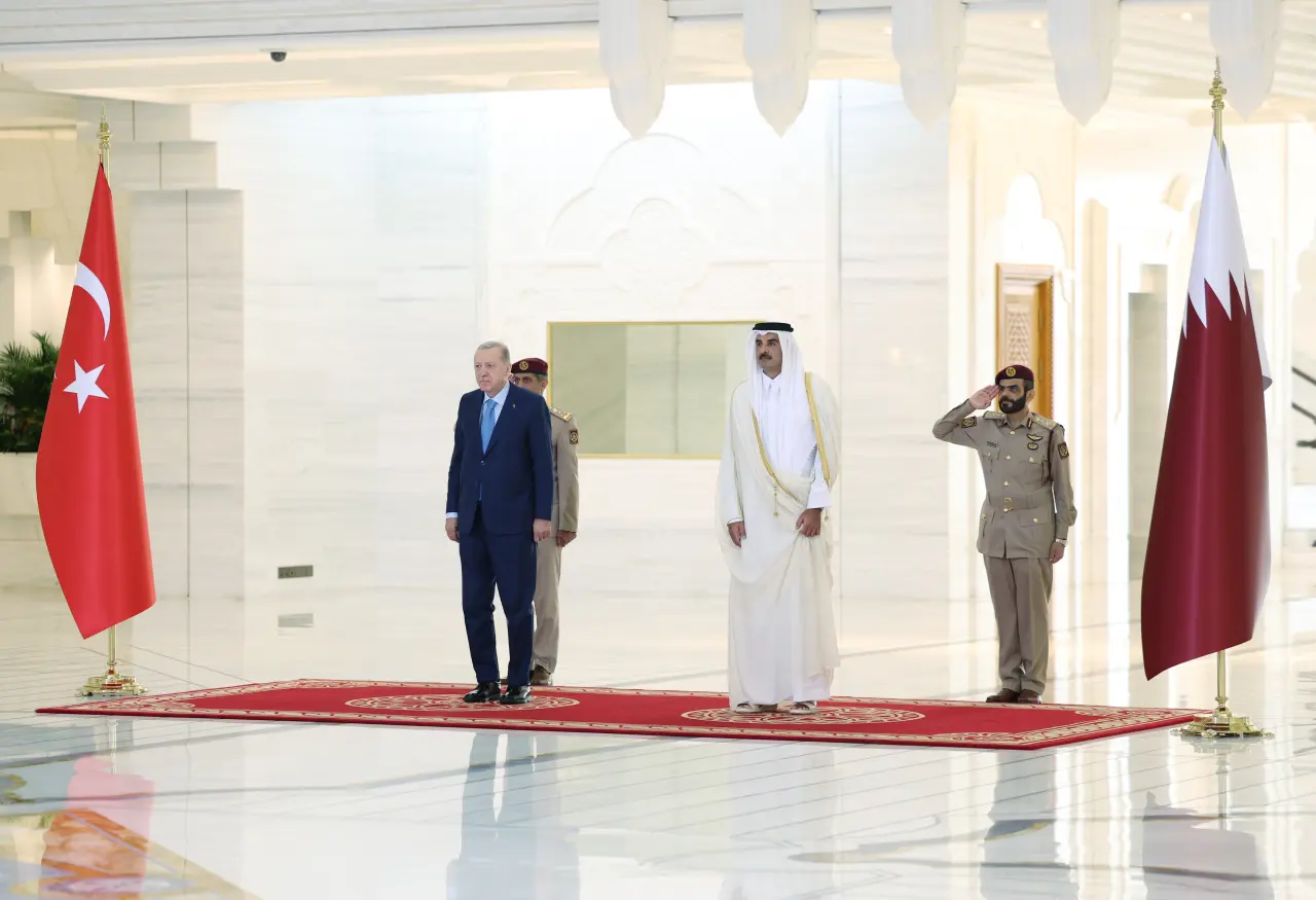 Cumhurbaşkanı Recep Tayyip Erdoğan, Katar'ın başkenti Doha'da Katar Emiri Şeyh Tamim bin Hamad Al Sani tarafından resmi törenle karşılandı.