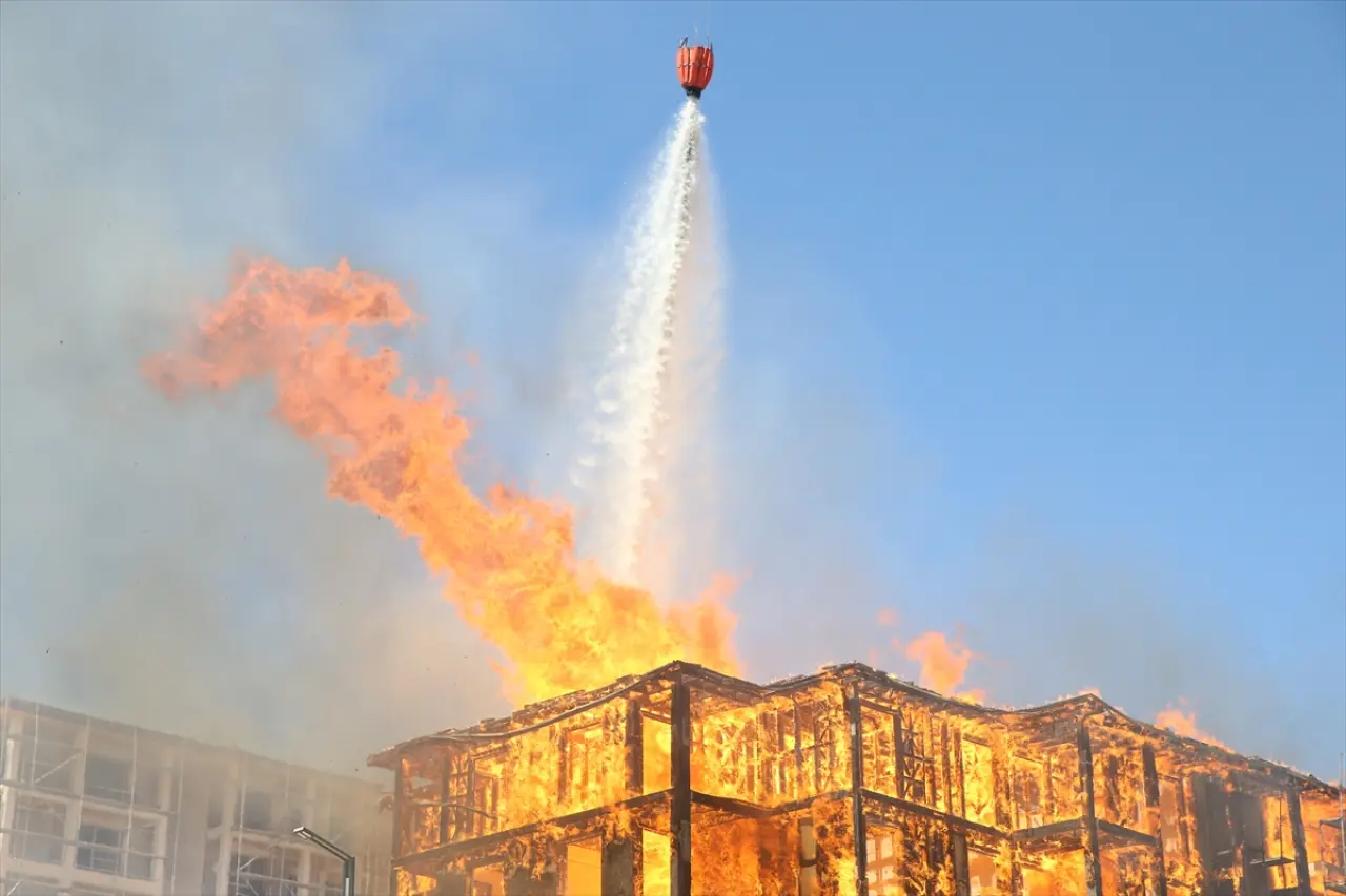 Kahramanmaraş’ın Onikişubat ilçesinde, Orman Bölge Müdürlüğüne ait kullanılmayan lojmanda çıkan yangına havadan ve karadan müdahale ediliyor.