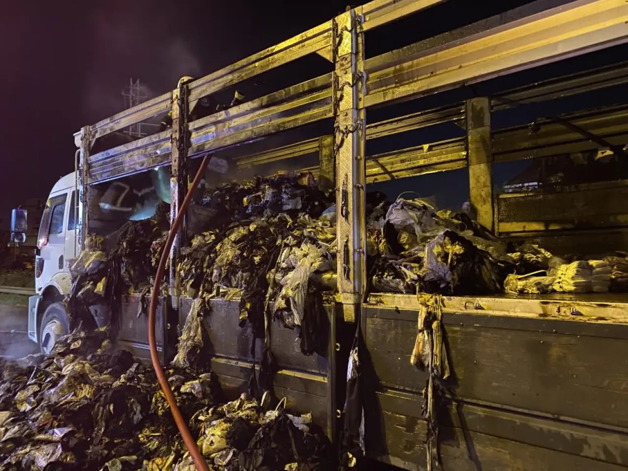 Ekiplerin çalışmaları sonucunda yangın kontrol altına alınarak söndürüldü. Yangın sonrası kamyonun dorsesinde bulunan tekstil ürünlerinin tamamı yanarak kül oldu. İtfaiye ekipleri, yeniden alevlenme riskine karşı uzun süre soğutma çalışması gerçekleştirdi. Yanan malzemeler dorseden boşaltılırken, Karayolları ekipleri de yolda temizlik çalışması yaparak trafik güvenliğini sağladı.