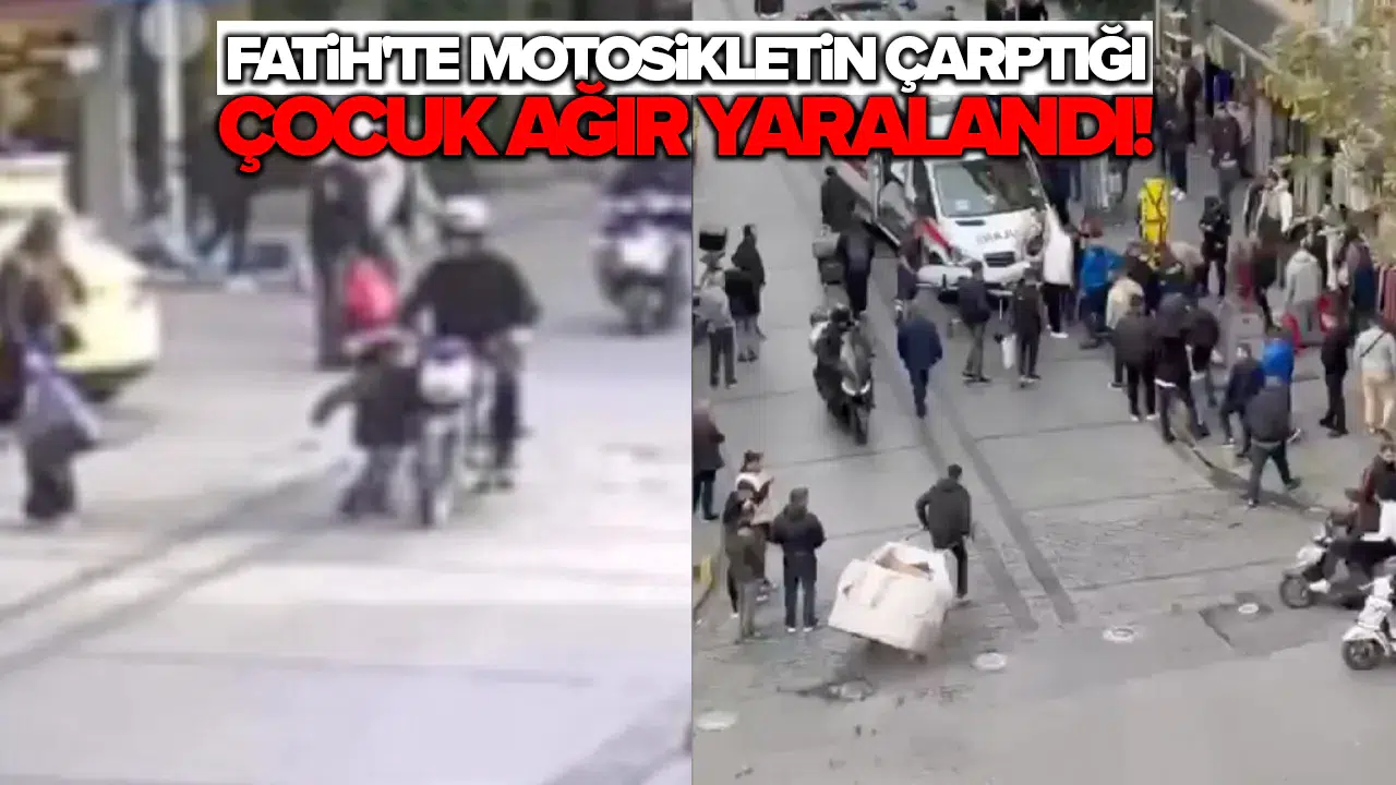 Fatih'te, annesinin elinin bırakıp yola çıkan çocuğa motosikletin çarpması güvenlik kamerasınca kaydedildi.