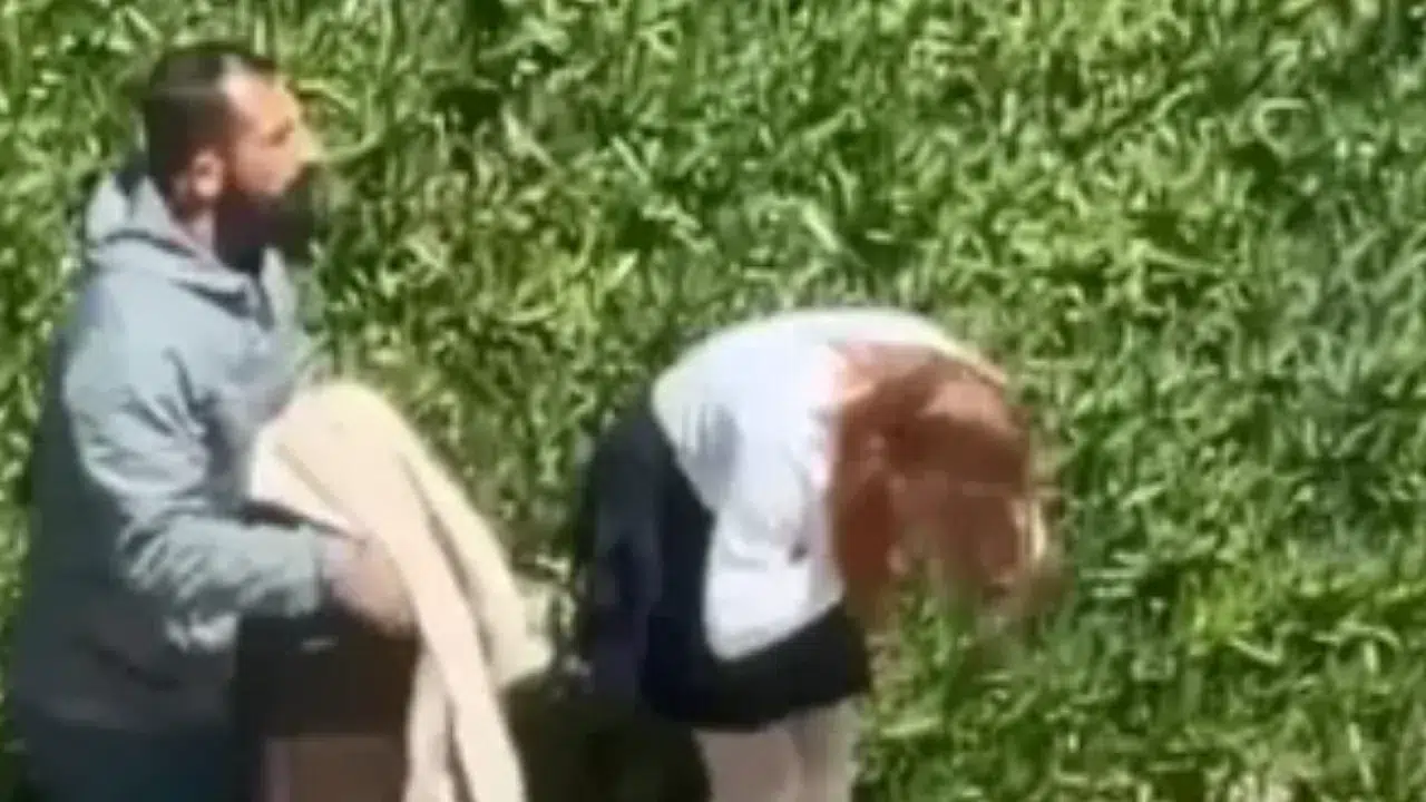 Darbettiği kadınla kaldırımda yürüyen saldırgan bu kez, fotoğraf ve video çekenlere bağırmaya başladı. Yürüdüğü sırada geri dönen saldırgan kendini uyaran bir kişiye saldırdı. Bu sırada araya girenlerle de tartışan saldırgan, kendisine engel olmaya çalışan başka bir kişiyle de kavga etmeye başladı. Yaşananlar ve elinden tuttuğu kadını olay yerinden götüren saldırganın görüntüleri cep telefonu kamerasıyla kaydedildi.