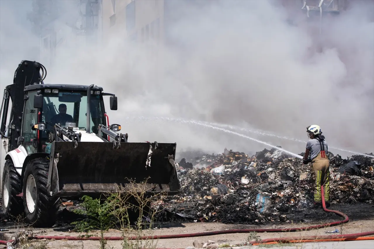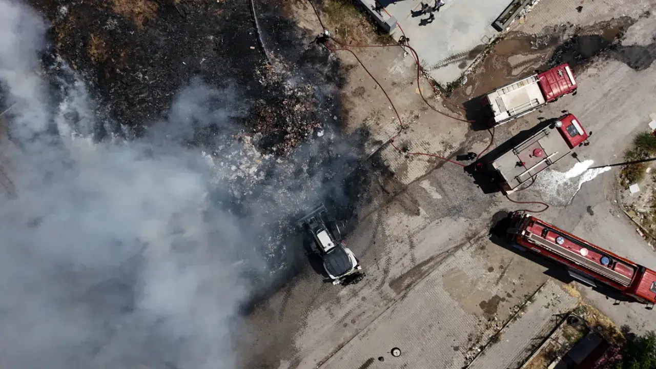 İzmir'in Bornova ilçesindeki Işıkkent Ayakkabıcılar Sitesi çevresindeki atık yığınında çıkan yangın, itfaiye ekiplerinin müdahalesiyle kontrol altına alındı.