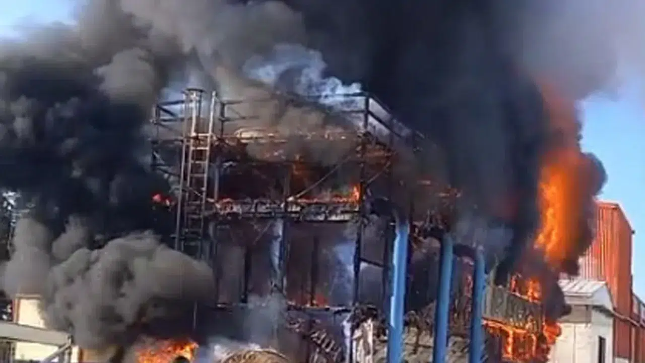 Emmioğlu Mahallesi'nde bulunan bir salça fabrikasının soğutma panelinde henüz belirlenemeyen nedenle yangın çıktı.