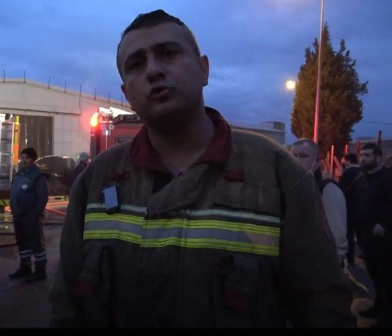 İtfaiye eri Üçok’a röportaj sırasında çalışanlar tarafından da müdahale edildi.