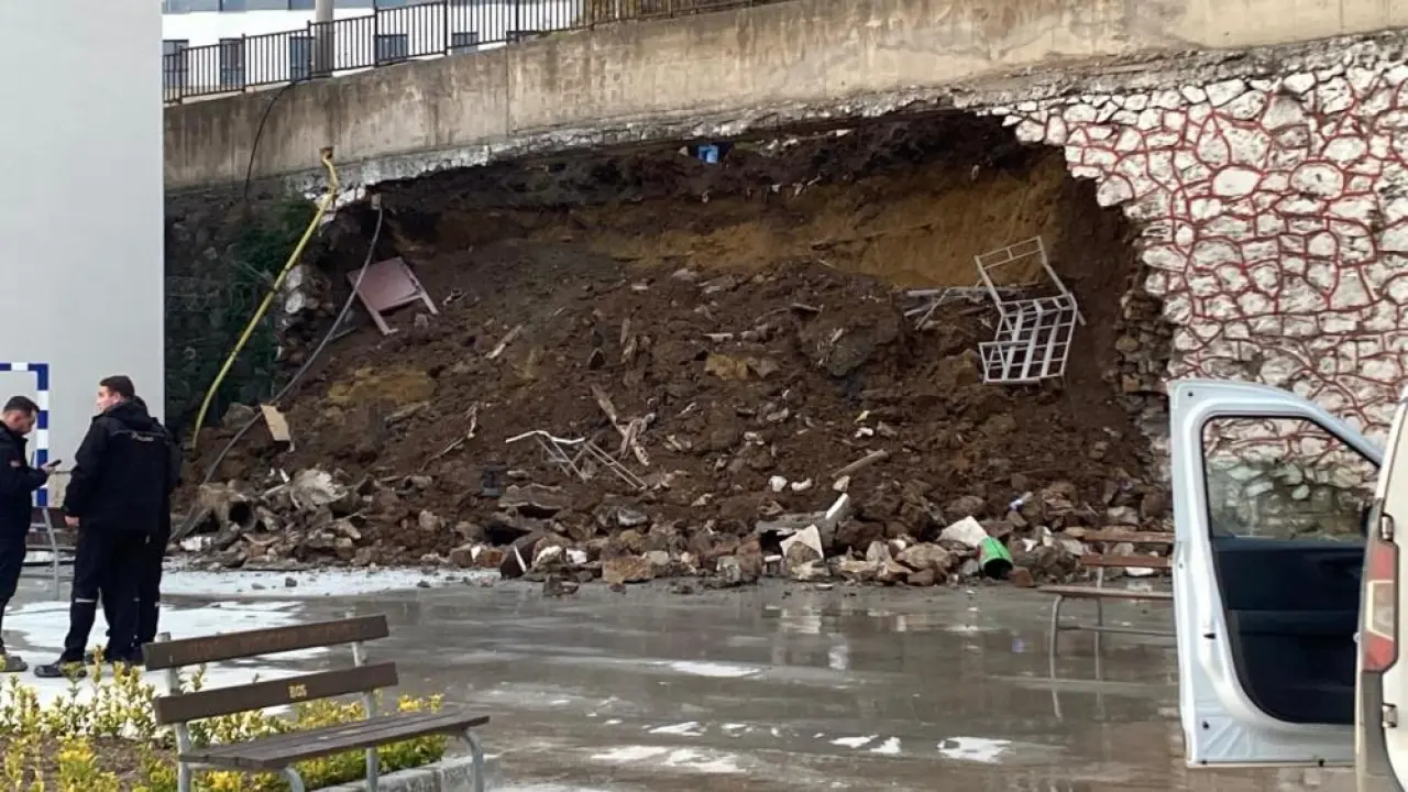 Kocaeli'nin İzmit ilçesinde 10 metrelik istinat duvarı, okul bahçesine doğru düştü. Olay, İzmit Cedit Mahallesi'nde yapımı süren bir inşaat sahasında meydana geldi.