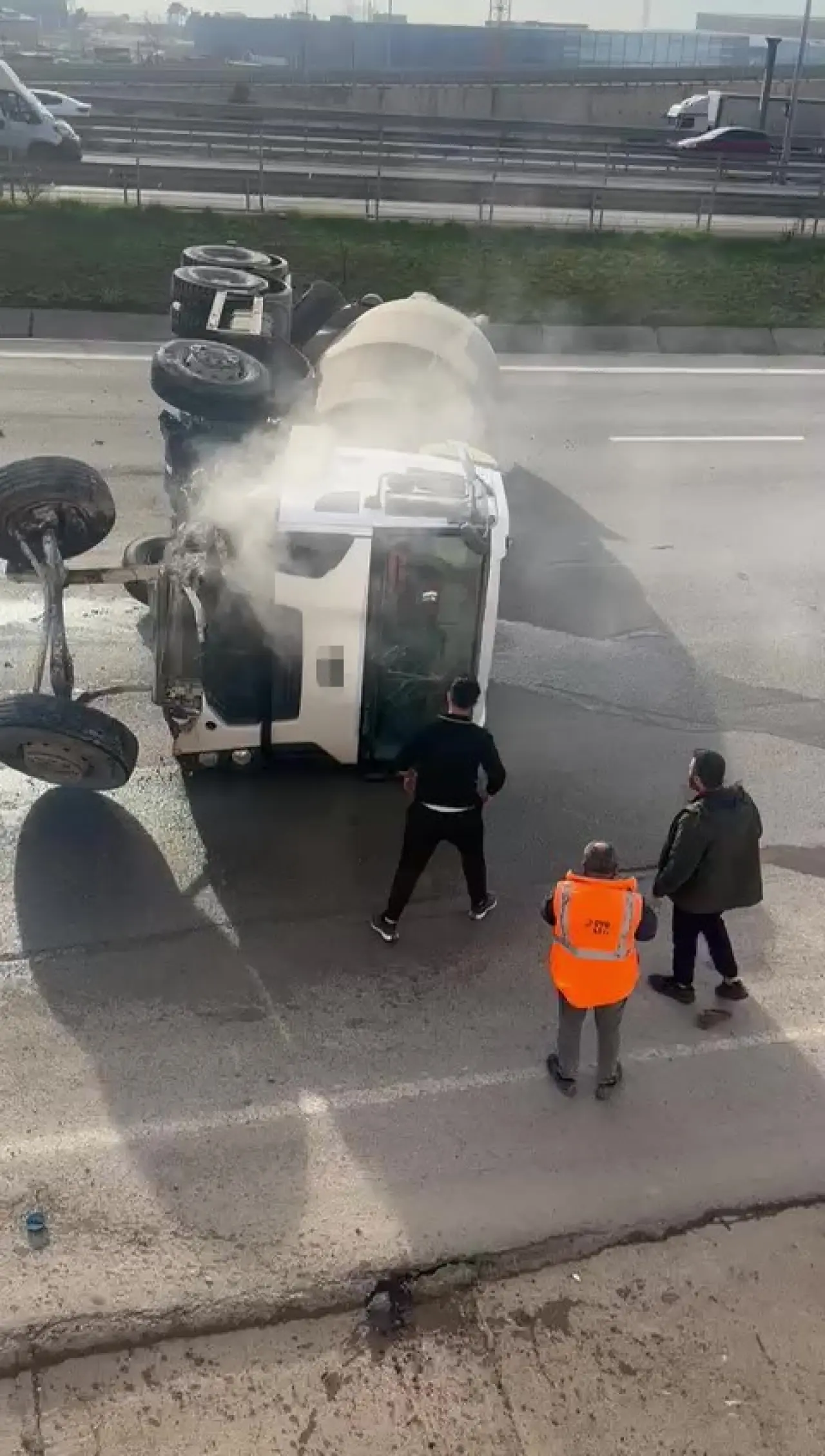 Çayırova ilçesi Şekerpınar TEM Otoyolu gişelerinde kontrolden çıkan beton mikseri yan yattı. Kazada araçtan dumanlar yükselirken, sürücü kabin içinde mahsur kaldı.