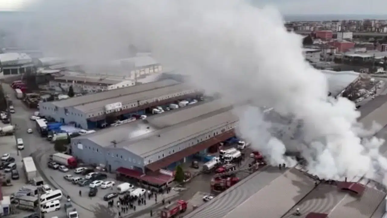 Ordu’nun Altınordu ilçesinde bulunan Toptancılar Sitesi’nde bir markete ait depoda yangın çıktı. Kısa sürede büyüyen alevler, yan taraftaki iş yerine de sıçradı.