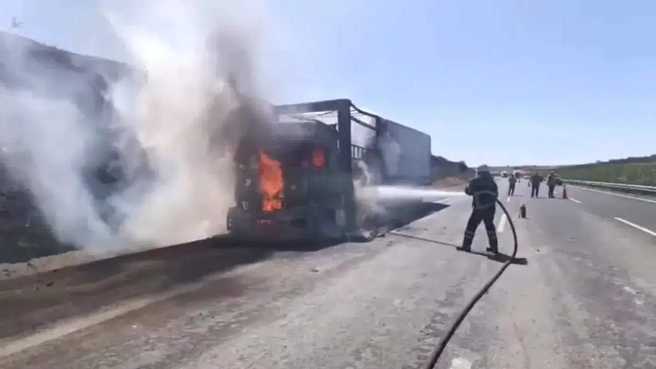 Edinilen bilgiye göre olay, Şanlıurfa-Gaziantep Otoyolu'nun Birecik mevkiinde meydana geldi. Sürücüsü ve plakası henüz belirlenemeyen bir tırın dorsesindeki saman balyaları bilinmeyen nedenle tutuştu. Durumu fark eden sürücü, aracı emniyet şeridine çekerek itfaiyeye haber verdi.