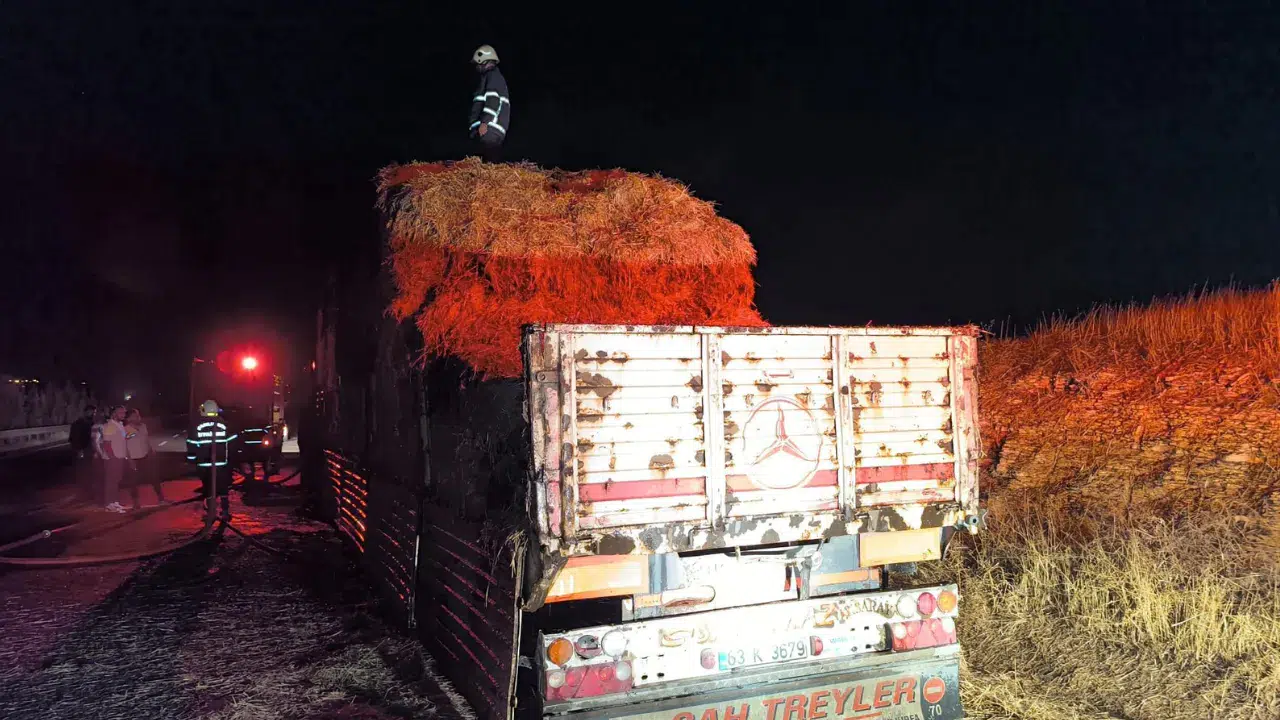 Sürücüsünün ismi henüz öğrenilemeyen 63 K 3679 plakalı saman yüklü tır, henüz belirlenemeyen bir nedenle alev aldı. Aracı yol kenarına park eden sürücü, itfaiye ekiplerine haber verdi. Olay yerine giden itfaiye ekipleri, yangına müdahale ederek söndürdü.