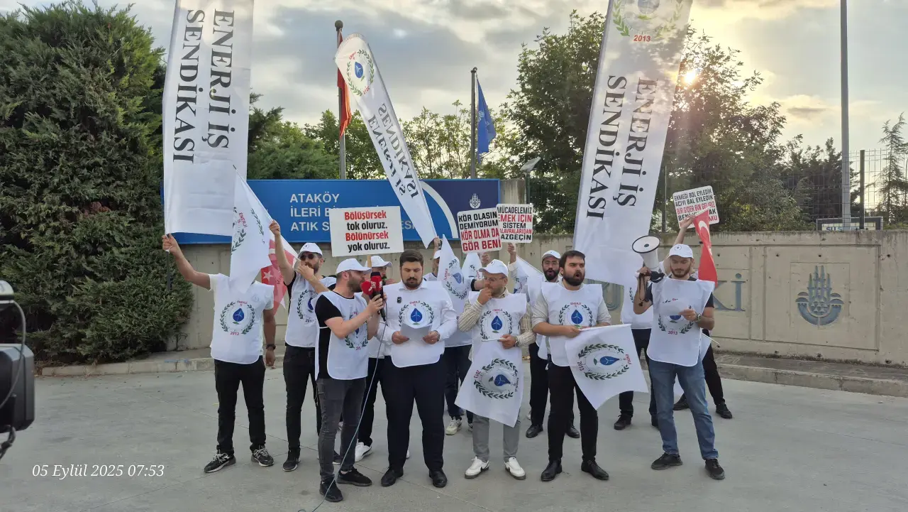 Enerji İşçileri Sendikası Genel Merkez Teşkilatı, İstanbul Büyükşehir Belediyesi'ne bağlı İstanbul Su ve Kanalizasyon İdaresi (İSKİ) Ataköy Atıksu Arıtma Tesisi önünde sabah 08.00'te basın açıklaması yaptı.
