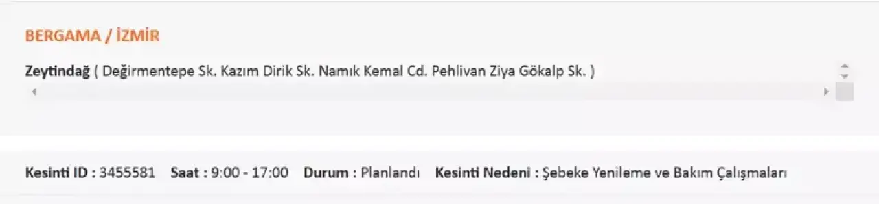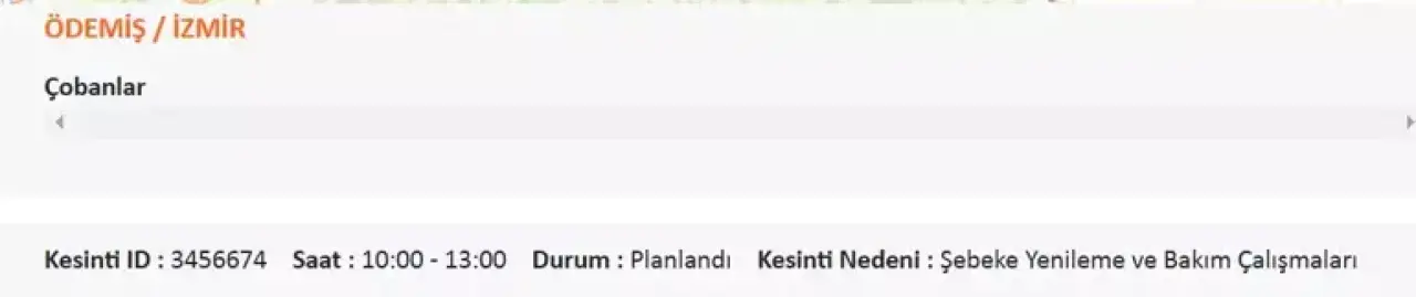 Özellikle Kiraz ilçesine bağlı Haliller ve Kaleköy Mahalleleri’nde kesintilerin saat 18:30’a kadar süreceği bildirildi.