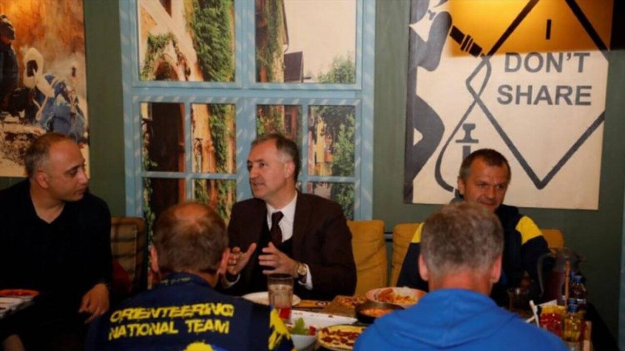 Türk misafirperverliğini Ukraynalı konuklardan esirgemeyen Vawelya Kafe, bu sabah Ukrayna Milli Takımı sporcularını kahvaltıda ağırladı. Belediye Başkanı Alper Taban’ın da katıldığı kahvaltı programında, Ukraynalı sporculara destek mesajları verildi. 16 sporcu ve teknik ekibin katıldığı kahvaltı sonrası açıklama yapan Belediye Başkanı Alper Taban, “Bugün bizlere ev sahipliği yapan Vawelya Kafedeyiz. Bizim de ev sahipliği yaptığımız Ukrayna’dan misafirimiz olan Oryantiring Milli Takımını bugün burada kahvaltıda ağırladılar. Bildiğiniz gibi yaklaşık 20-25 gün önce Antalya’da yapılan bir şampiyona için İnegöl Belediye Spor Kulübü sporcularımız da oradaydı. Ukrayna takımı ülkesine dönemedi. Sonrasında arkadaşlarımız da buradaki diğer oyuncular ülkelerine dönemiyor, şehrimizde ağırlayabilir miyiz diye bizlere sordular. Devamında Ukrayna İşitme Engelli Oryantiring Milli Takımını DOSTUM tesislerimizde misafir etmeye başladık” dedi.