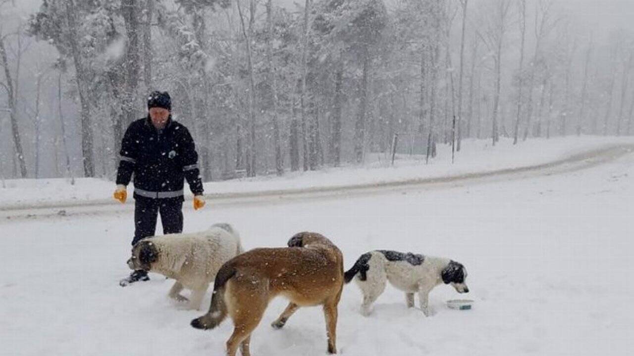 Osmangazi Belediyesi, soğuk havaların ve kar yağışının etkili olduğu bu günlerde Uludağ’daki sahipsiz hayvanları biran olsun yalnız bırakmayarak yol kenarlarına düzenli olarak mama bırakmayı sürdürüyor.BURSA (İGFA)- Osmangazi Belediyesi Çevre Koruma ve Kontrol Müdürlüğü ekipleri, ilk kar yağışının düştüğü günden itibaren Uludağ’daki can dostları yalnız bırakmıyor. Ekipler, sahipsiz hayvanların aç kalmamaları adına yol boyunca belirli noktalara haftanın üç günü kuru mama bırakıyor. Karla kaplı beyaz cennette yiyecek bulmakta zorlanan hayvanlar, ekipler tarafından bırakılan kuru mama ile beslenerek, kış aylarında beslenme sıkıntısı çekmiyor. Kar yerden kalkana kadar can dostlar enerjisi yüksek mamalar ile besleniyor.