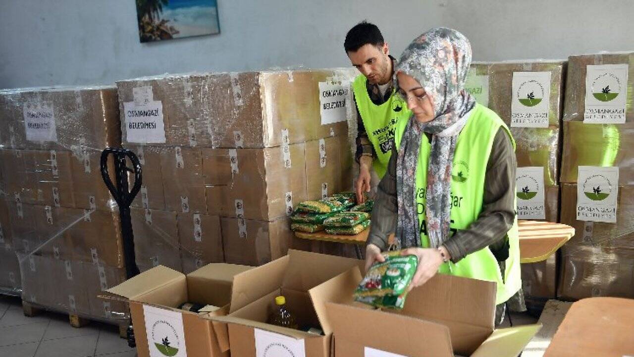 Osmangazi Belediyesi, Ramazan ayında maddi durumu iyi olmayan, kimsesiz, yardıma muhtaç ve ihtiyaç sahibi 13 bin 500 aileye gıda paketi dağıtıyor. Gıda paketi dışında Somuncu Baba Gönül Fırınında pişirilen günlük 7 bin ekmek ile şehrin 5 farklı noktasında kurulacak iftar çadırlarında günlük 2 bin 500 kişiye iftar yemeği dağıtılacak.BURSA (İGFA)- Her yıl olduğu gibi bu sene de yardım ve dayanışma ayı 11 ayın sultanı Ramazan ayında ihtiyaç sahibi aileleri unutmayan Osmangazi Belediyesi, kayıtlı ihtiyaç sahibi ailelerin dışında, muhtarlıklar aracılığı ile iletilen dar gelirli, yoksul, engelli ve yardıma muhtaç ailelere yapacağı 13 bin 500 adet gıda paketi dağıtımını sürdürüyor. Erzak yardımı dışında, son iki yıldır Covid-19 salgını nedeniyle kesintiye uğrayan iftar çadırları bu yıl yeniden açılıyor. Günlük 2 bin 500 kişi, Ramazan boyunca 75 bin kişi kurulan bu çadırlarda ikram edilecek sıcak yemek ile oruçlarını açacak.