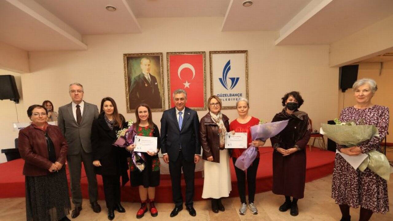 Güzelbahçe Belediyesi ile Güzelbahçe Kültür sanat ve Musiki Derneği işbirliği ile Kadının Gücü Sergisi Açıldı.İZMİR (İGFA)- 8 Mart Dünya Emekçi Kadınlar günü kapsamında Güzelbahçe Belediyesi Düğün Salonu’nda ‘Güzelbahçeli Kadın Sanatçılar’dan oluşan Kadının Gücü Sergisi düzenlendi. Etkinliğe Güzelbahçe Kaymakamı Bülent Bayraktar ve eşi Yasemin Bayraktar, Güzelbahçe Belediye Başkanı Mustafa İnce ve eşi Nilüfer İnce, CHP Güzelbahçe İlçe Başkanı Çağlayan Bilgen, İzmir Köy Koop. Başkanı Neptün Soyer, meclis üyeleri ve Güzelbahçeliler katıldı. Sergi öncesi pasta tasarımında Selhan Özel’in yaptığı 8 Mart pastası katılımcılarla birlikte kesildi.