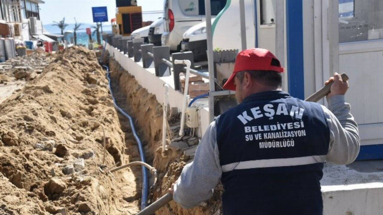 Keşan Belediyesi, mücavir alanlarından olan Erikli Sahili’nde içme suyu abone bağlantılarına başladı.Erdoğan DEMİR / Keşan Postası (EDİRNE İGFA)- Keşan Belediye Başkanı Mustafa Helvacıoğlu, 8 Nisan 2022 Cuma günü, Belediye Başkan Yardımcıları Yakup Balcı, Ali Ünal, Bülent Günsal ve Su Kanalizasyon Müdürü Bedri Kara ile abone bağlantı çalışmalarının başladığı alana giderek, yürütülen çalışmalarla ilgili açıklama yaptı.