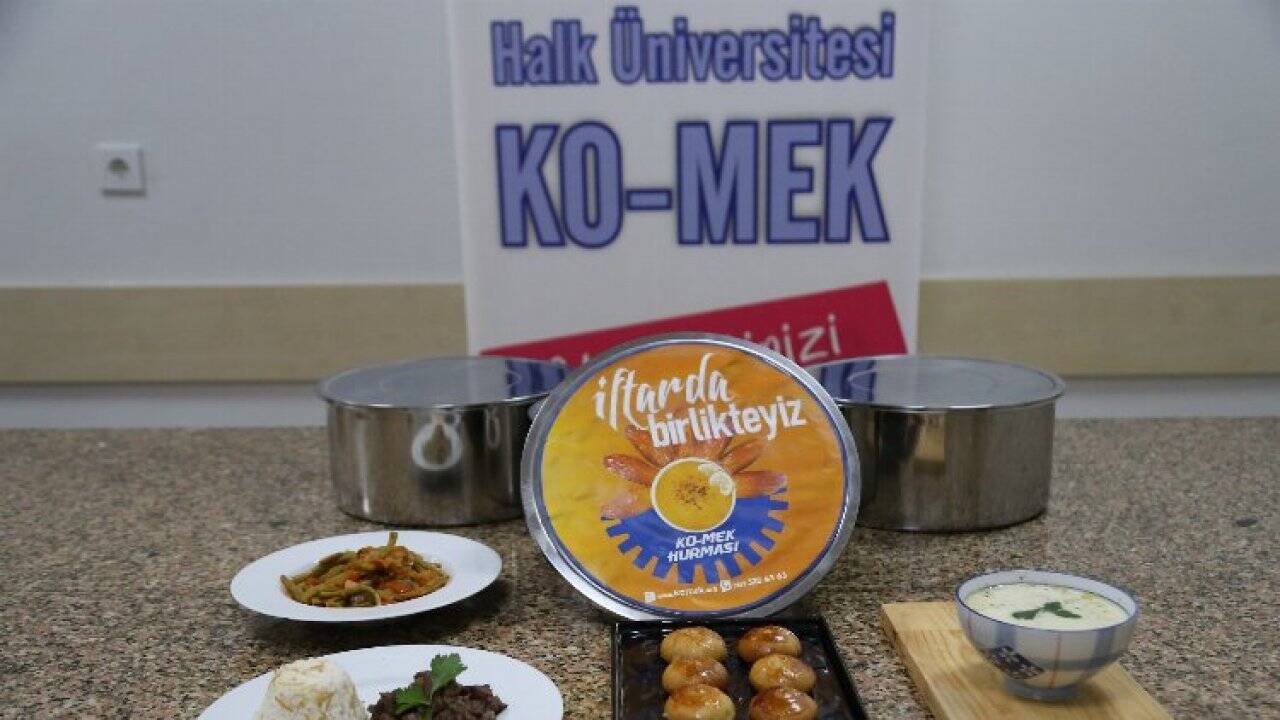 "KO-MEK Hurması” projesi bu yıl da 100 ihtiyaç sahibi ailenin yanında olmaya devam ediyorKOCAELİ (İGFA)- KO-MEK Hurması geleneği bu yılda bozulmayarak ihtiyaç sahibi ailelerin sofralarına misafir olmaya devam ediyor. Kocaeli Büyükşehir Belediyesi her Ramazan ayında olduğu gibi bu yıl da bizi biz yapan değerlerimizle ihtiyaç sahibi ailelerin sofralarını bereketlendirmeye devam ediyor. Kocaeli Büyükşehir Belediyesi Meslek ve Sanat Eğitimi Kursları (KO-MEK) Türk Mutfağı Kursiyerlerinin hazırladığı yemekler bu Ramazanda da ihtiyaç sahibi ailelere “KO-MEK Hurması” projesi ile ulaştırıyor. Proje kapsamında on iki ilçede ihtiyaç sahibi olduğu belirlenen vatandaşlara kurs merkezlerinde hazırlanan iftarlıklar ulaştırılıyor.